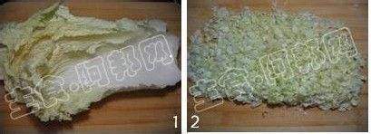 白菜洗净切碎,加少许盐,搅拌均匀后,放置一旁静待出水后捞起挤出水分。注意:挤出的菜汁要保留,稍后拌馅的时候用;