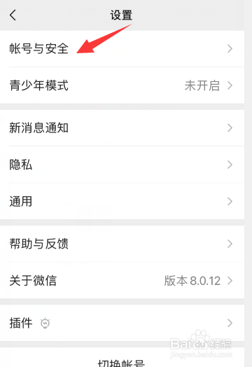 在设置页面点击“帐号与安全”