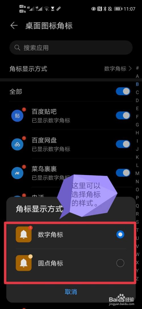 第五、还可以在“角标显示方式”中选择自己想要的角标。