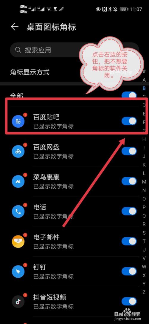 第四、下面就是默认开启右上角图标角标的软件了,自己把不想要开启的软件手动关闭即可。