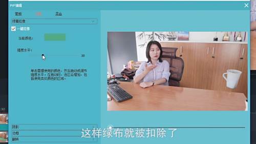 5勾选一键抠像,吸取绿布的颜色,再提高一下扣除强度,这样绿布就被扣除了。END