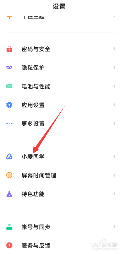 向下滑动找到小爱同学;