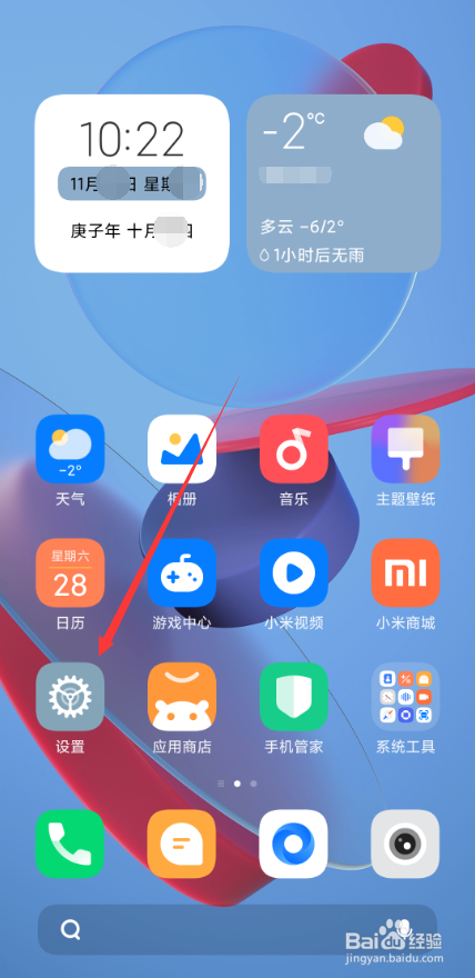 手机桌面找到设置选项打开;