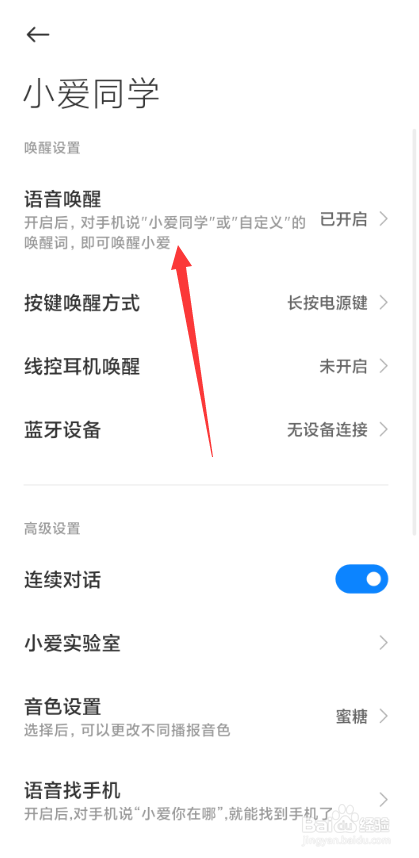 点击语音唤醒选项;