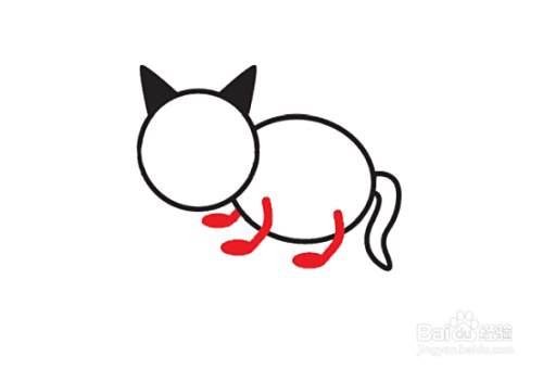 将身体画成一个椭圆形的圈,从猫头的后部向下倾斜。