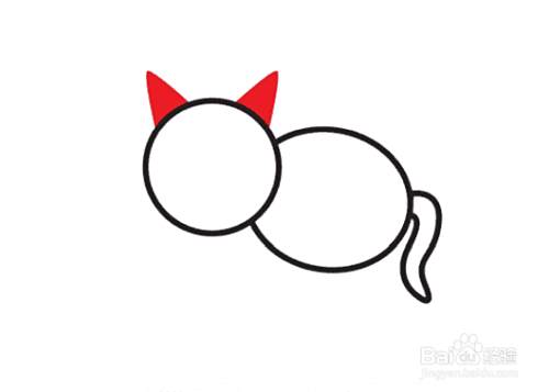在猫头的右上方和左上方,画出两个三角形的耳朵。