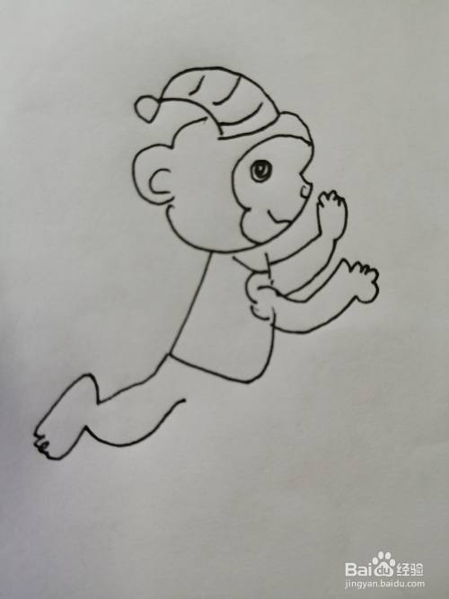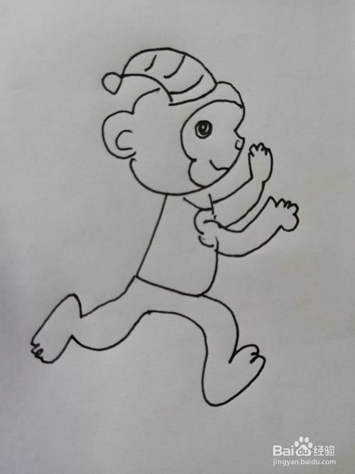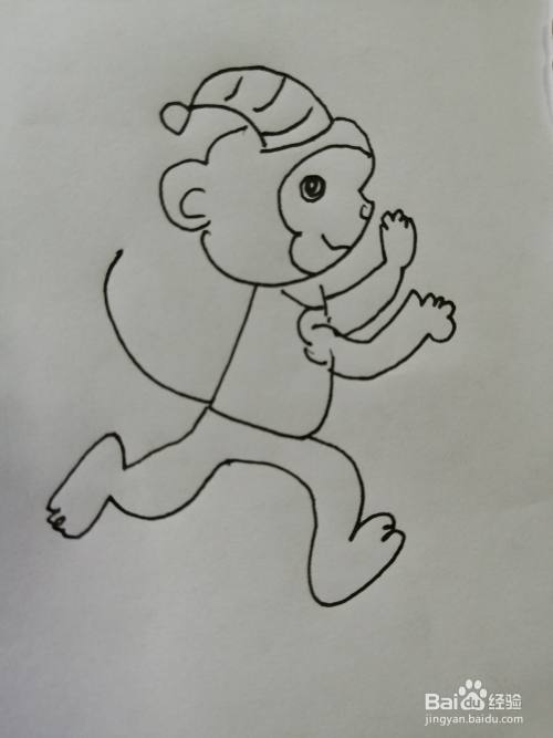 第七步,最后把可爱的小猴子的小尾巴画出来。可爱的小猴子就画好了。