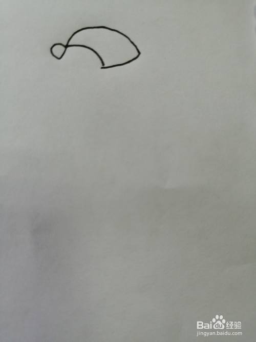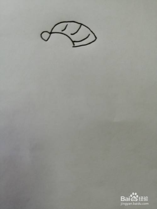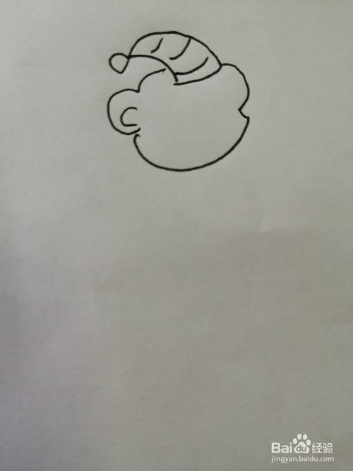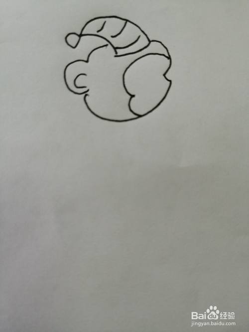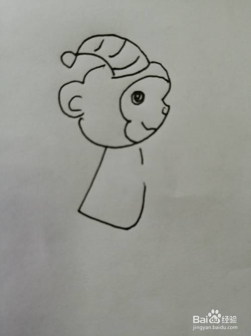 第一步,我们先把可爱的小猴子的头顶的帽子画出来,注意帽子上纹路的画法。