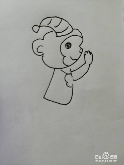 第五步,接着继续画出可爱的小猴子身体,注意小猴子两只小手的画法。