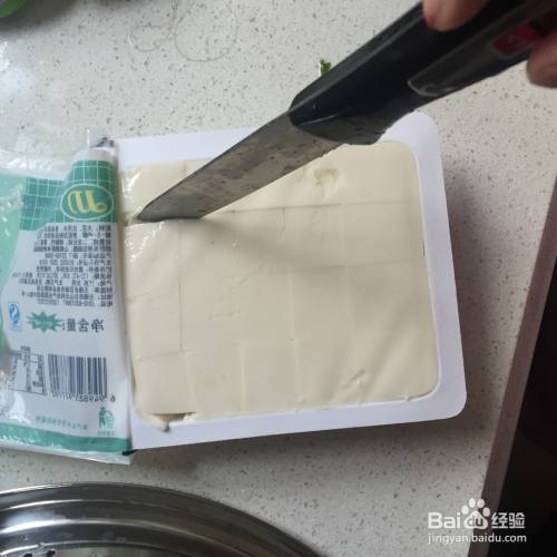 豆腐用小刀切成块。