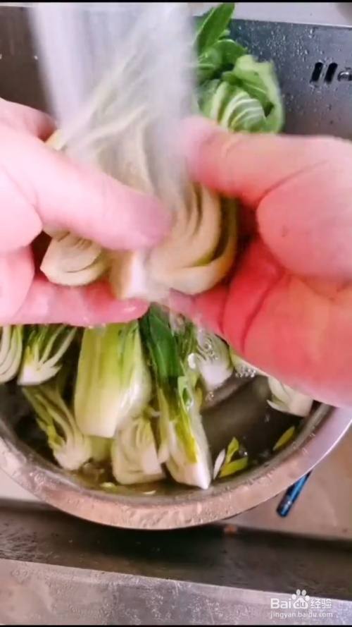 香瓜洗净去根切块,油菜切成四瓣清洗干净。