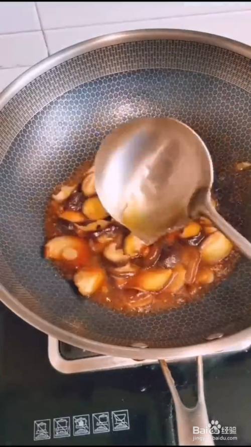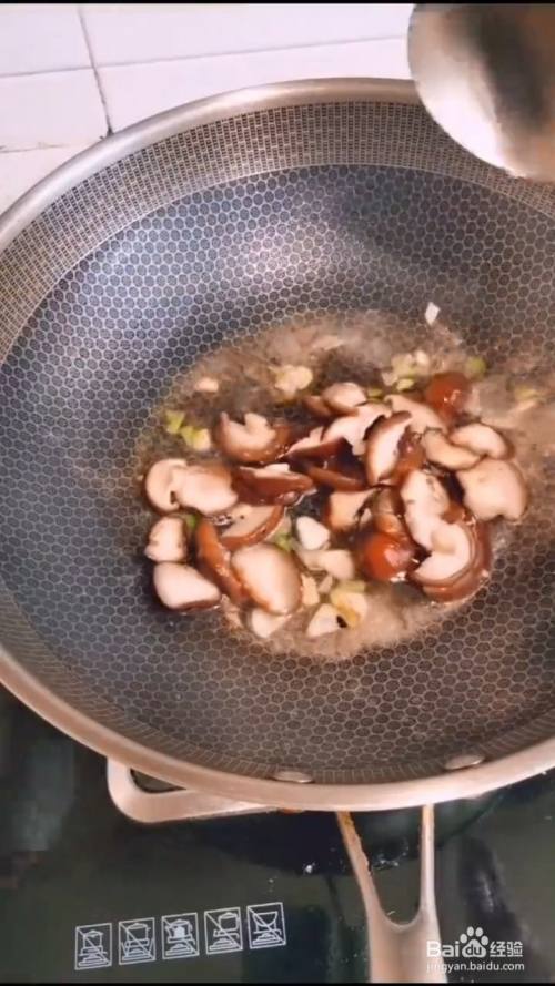 再起锅烧油,放入葱蒜爆香,加入清水,下入香菇,再加入酱油,蚝油小火煮2分钟;再淋入水淀粉勾芡,再淋入熟油即可出锅。