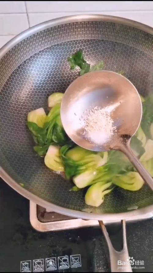 再起锅烧油,下入油菜,加入盐,鸡精翻炒均匀出锅装盘。