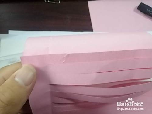 取第二张彩纸的剩余部分,按照1厘米的宽度折叠,并用壁纸刀裁下来。