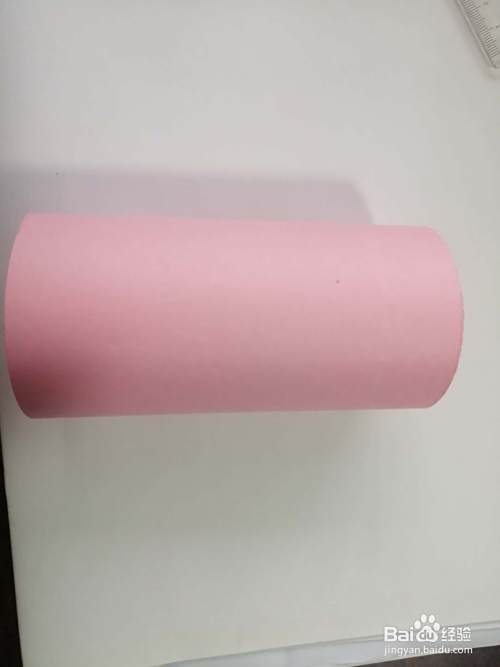 取第二张彩纸中较大的部分,按照短边方向折成圆筒状,并用胶棒粘牢。
