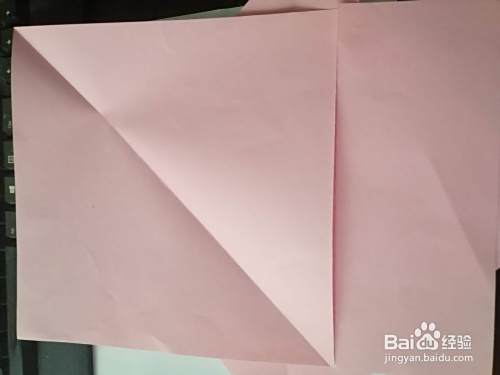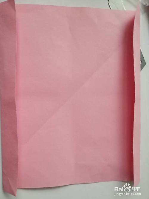 取彩纸两张张,斜角对折,用壁纸刀裁成两个正方形的纸张。