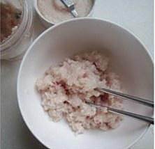 再依次加入适量的盐、蛋清和淀粉,继续同一个方向搅拌
