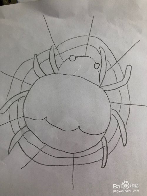 在蜘蛛周围画出蜘蛛网,这样一只可怕的大蜘蛛就画成了。