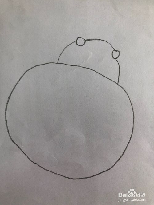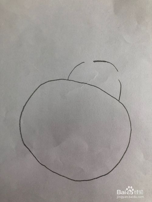 在大圆靠右上面画个半圆,中间两处要留空白,形状如下图。