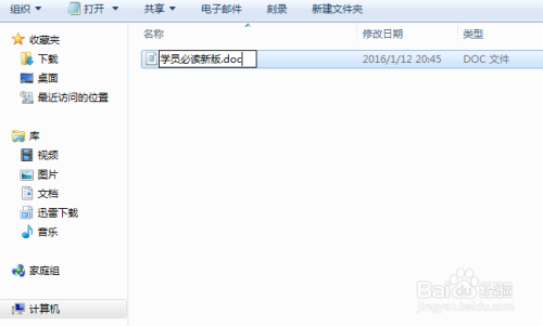 鼠标点击选择该文件,然后右键选择“重命名”;在文件的后面打上“ .doc ”;(注意名称后的点没有空格)。最后按下确认键“Enter"。
