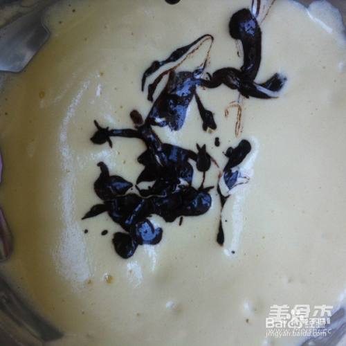 3牛奶在电磁炉上小火加热至巧克力融化,加入可可粉