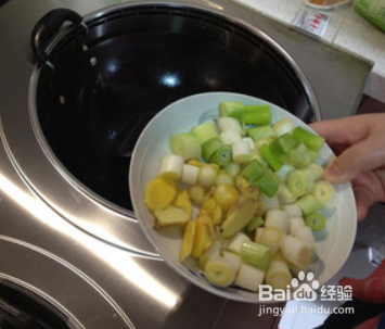 准备大量的姜,葱,还有自己熬的羊油,先加猪油,再加入羊油,倒入姜,葱爆香。