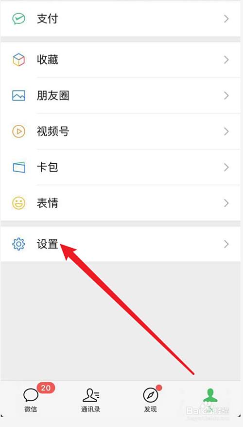在微信界面点击右下侧我的,在我的界面点击设置进入;