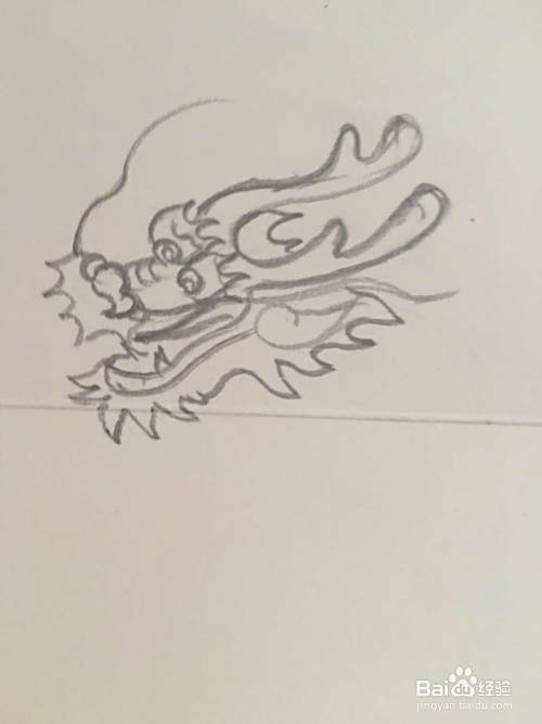 第一步 先画龙的鼻子和眼睛 然后是龙角 龙须 以及龙的胡须 这样就画完了半个龙头。