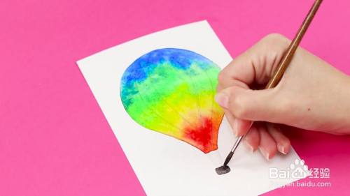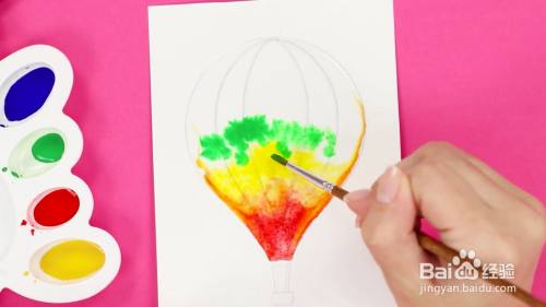 接着画出热气球的轮廓,在轮廓里面用水涂抹。
