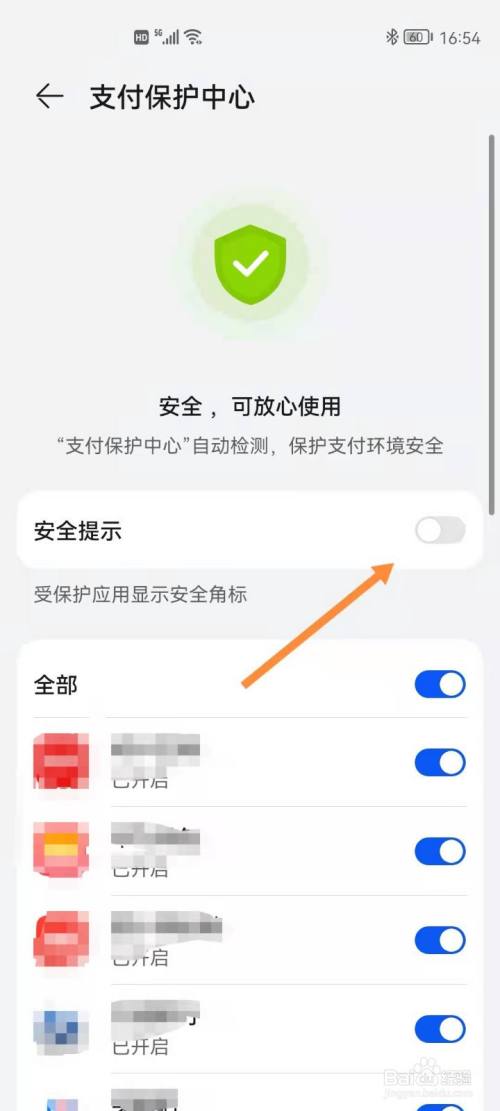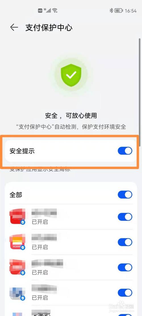 轻触安全提示右侧的按钮,开启即可。