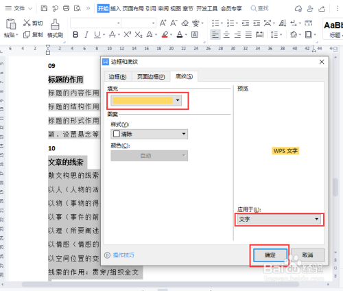 我们把09序号下面的一段文字选中,然后在上方点击【字符底纹】。