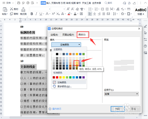 接着,我们把边框和底纹的填充颜色设置为橙色。