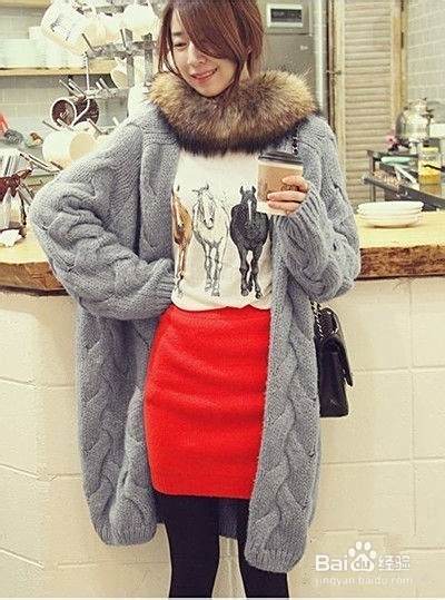 松垮的大毛衣、毛毛领子、包臀红裙,各种元素混搭在一起是很考验功力的,看似随意,实则埋藏小心机啊,喜欢玩搭配游戏的你可以大胆尝试哦!