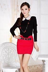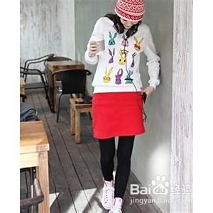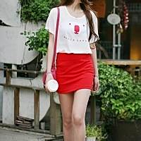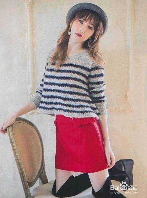 衣橱里的白色T恤、条纹T恤都可以拿来搭红色短裙哦,最好是黑白或灰色,这样既清新又不失时尚。