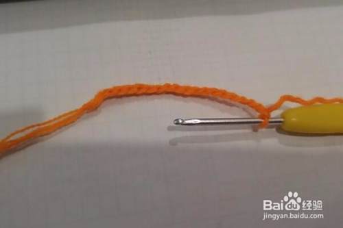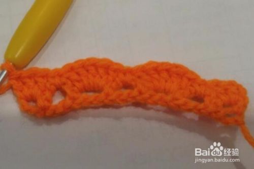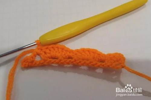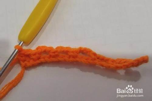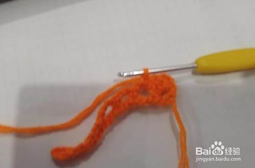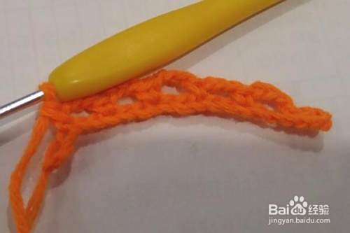 第一行:先拉3个辫子针,然后返回在倒数第6针里钩织一个短针,再拉3个辫子针,再隔二针钩织1个短针,下面再拉3个辫子针,再隔二针钩织1个短针,一直都是按照这样的钩织方法进行。