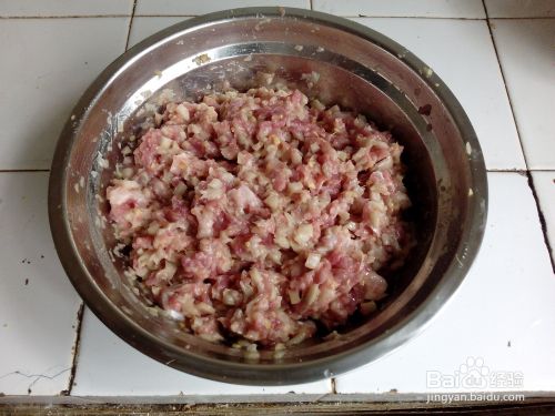 将肉切块,让入家用绞肉机绞细,但是不能过细。