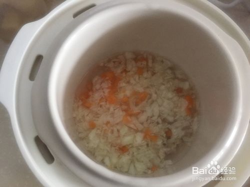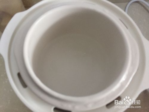 在baby煲的炖锅中加水,并把鸡肉放里面炖煮一小时左右。