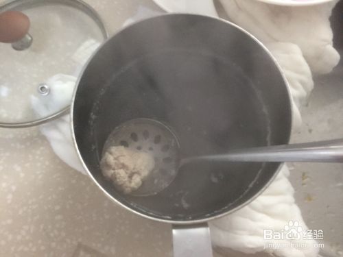 将冰箱里的鸡肉拿出来,放入锅中煮一会,用勺子捞出并用水冲洗干净。如果买来新鲜的鸡肉,可省略此步骤。
