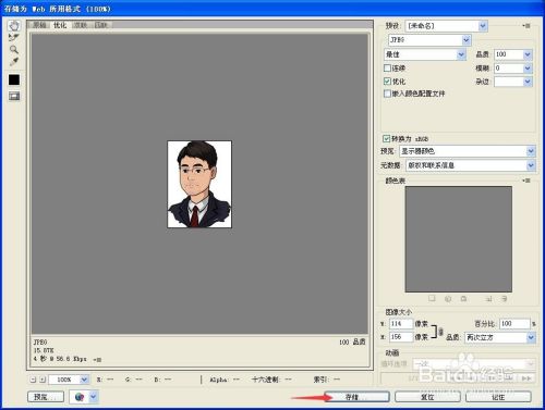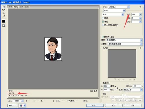 这里假设要求是照片大小宽约114象素,高约156象素,文件大小20KB以下