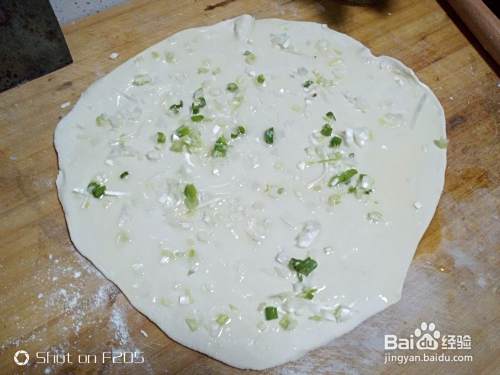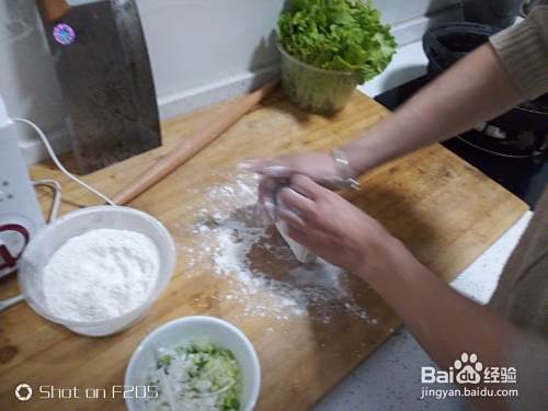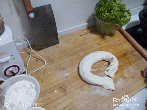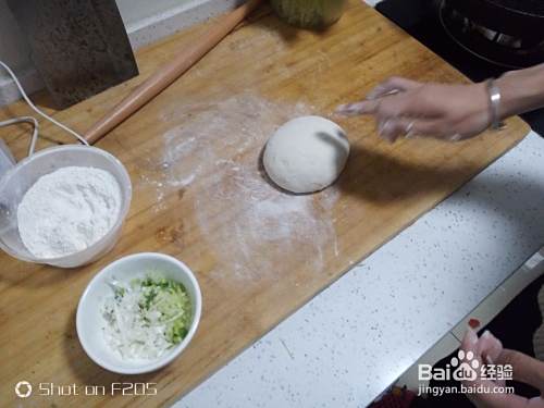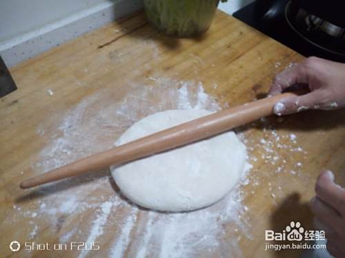 将面粉洒在案板上少许(不让面团粘在案板上)