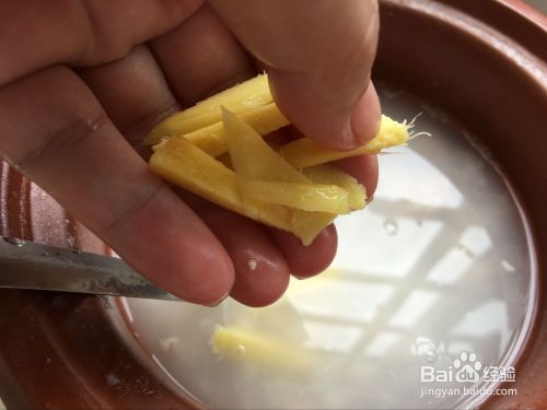 生姜切丝备用。