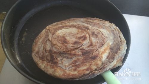 烙制底部定型,翻面后再刷油,这样做外皮更加酥脆