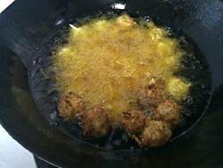 中火将白萝卜丸子炸至金黄即可。