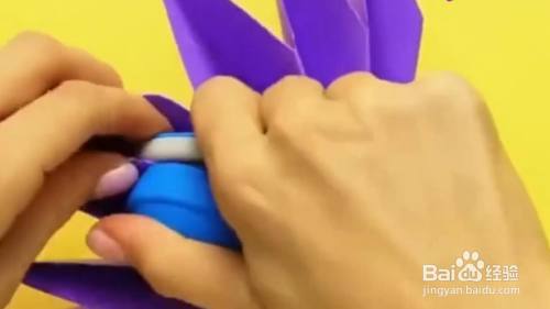 展开时用订书针把两边钉上,一朵漂亮的小纸花就完成了。