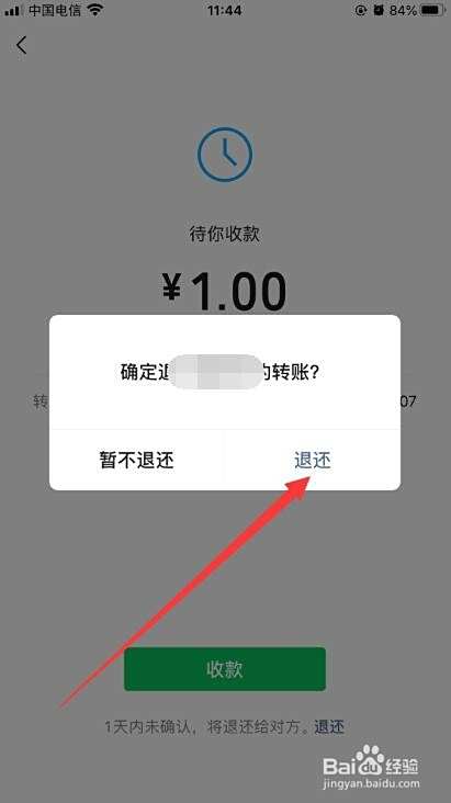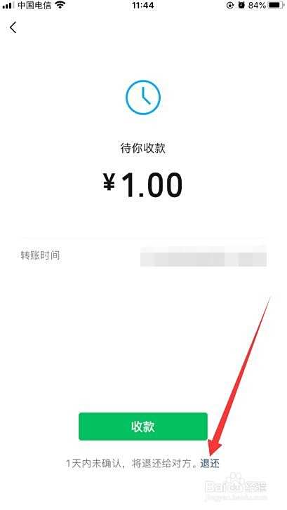 点击确认退还,这样转账信息就退还给对方了,还有如果24小时还是未收,系统也会自动退还