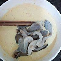 7. 把捏干水分的蘑菇放进准备好的蛋糊中