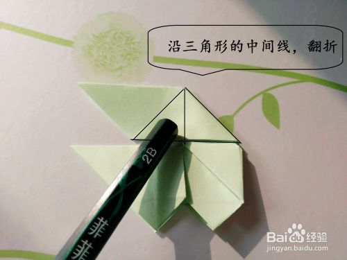 翻面,沿图示的两角,将上面的图形翻到背面。