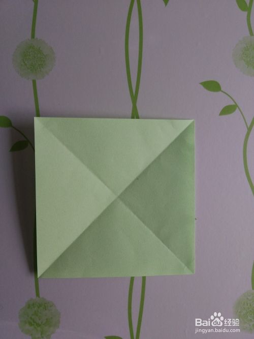 将正方形彩纸折出“十”字折痕,并展开。其中,三角沿中心点折叠。