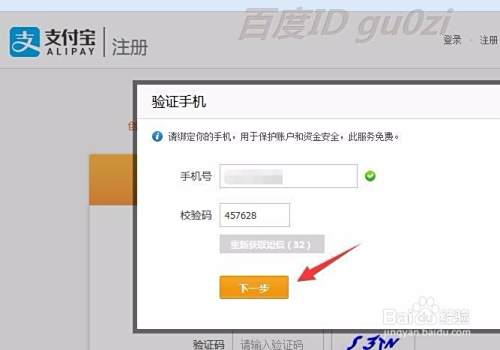 这里还是需要验证手机号码,在取得校验码后,进入下一步,