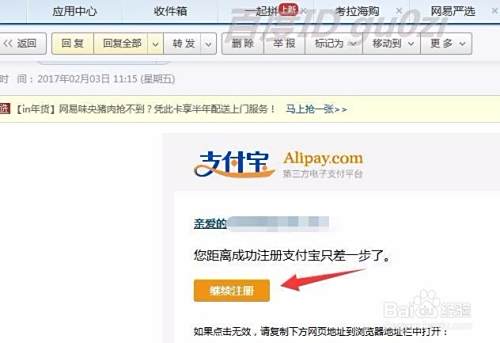 登陆邮箱后,打开验证邮件,点击 继续注册,